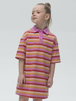 Яркое трикотажное платье без рукавов, декорированное помпонами. Свободный крой, круглый вырез горловины. Без застежки и подкладки.На ребенке представлен размер 110:- Ширина изделия по линии груди 32 см- Ширина по низу изделия 91 см- Длина изделия 55,5 смРазница между размерами составляет 1,5 см.