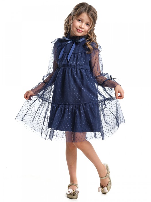 Совместные покупки Омск Детская одежда Платья — Mini Maxi Платье (98-122см) UD 7360-4(2) синий-горошек