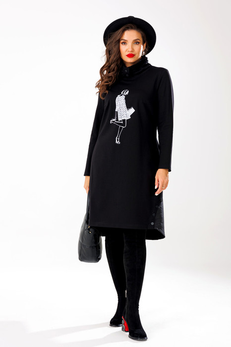 Стильное платье, модного А-силуэта, выполнено из двух видов ткани, по переду из трикотажа с добавлением вискозы и спинка – комбинация трикотажа и высококачественной стеганки. Перед платья декорирован стильной печатью, что придает модели особый шарм. Горловина стойка, с застежкой на кнопки. Рукав втачной, полной длины. По низу переда платье с застежкой на кнопки. Модель удобная и практичная, вы будете в нем выглядеть неотразимо.