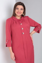 Платье женское приталенного силуэта, выполнено из костюмной ткани. По переду имитация застежки на петли-пуговицы, воротник стойка, на рукавах шлицы, по спинке застежка на молнию. Изделие на подкладке.