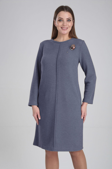 Тёплое женское платье свободного покроя может украсить гардероб многих женщин. Круглый вырез горловины, обработанной бейкой, по центру переда защип на 0,5см и прорезные карманы с листочкой. Спинка платья со средним швом. Декоративное украшение прилагается.