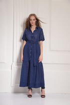 Льняное платье с дизайнерской вышивкой по ноге. В боковом шве разрез, застежка на молнию по спинке.