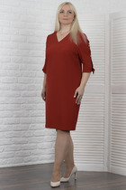 Офисное платье с укороченным рукавам. Манжеты необычной формы с пуговками. Застежка на тесьму молнию по спинке.