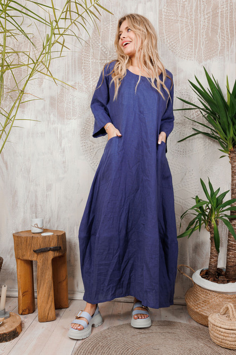 Волшебное длинное льняное платье "АМУЛЕТ" с очень интересной формой юбки ввиде тюльпанчика. Плюс удобные стильные большие карманы. Все изделия коллекции "АМУЛЕТ" имеют натуральную ткань, сложную обработку всех внутренних швов и энергосберегающий крой. В подарок идет шопер с логотипом бренда.