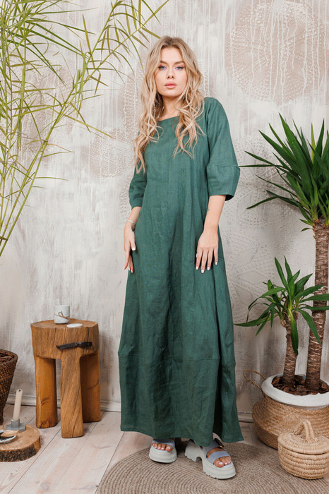 Волшебное длинное льняное платье "АМУЛЕТ" с очень интересной формой юбки и руквов ввиде тюльпанчиков. Плюс удобные стильные большие карманы.  Все изделия коллекции "АМУЛЕТ" имеют натуральную ткань, сложную обработку всех внутренних швов и  энергосберегающий крой. В подарок идет шопер с логотипом бренда.