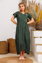 Штапельное бежевое платье в горох. Что может быть приятнее и красивее! По переду горловина с А- образным вырезом ,отрезное по линии талии и тремя воздушными валанами. По спинке по линии талии резинка- венгерка в несколько рядов. Такая отделка по спинке даёт возможность идельно смотреться  на любой фигуре.