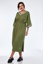 Хлопковое небесного цвета платье свободного стиля с потайной застежкой на петли и пуговицы по переду с карманами в боковых швах.
