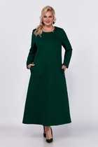 Стильное женское платье с А -образным вырезом горловины и рукав фанарик. По спинке застёжка- молния. Пояс прилается .