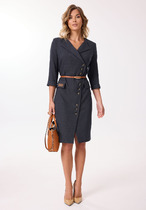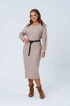 Трикотажное платье средней длины, с красивой горловинкой - стойкой.   Особенно красивый трикотаж - немного меланжевый и имеет еле-заметную  тончайшую люриксовую ниточку, При чем, блеск настолько мягко проигрывается, что очень мало заметен, но в то же сремя придает богатства и эффектого вида изделию. По этому платье прекрасно подойдет для любого случая в жизни.