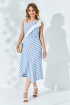 Яркий образ женского платья будет привлекать внимание окружающих.По спинке изделия застёжка-молния и разрез. По переду полукруглый вырез горловины,рельефные линии от проймы. Действующие карманы . Необычный рукав даёт свободу движения. Платье на любой сезон.