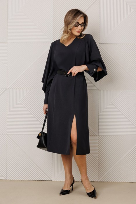 Элегантное женское палтье  с рукавом необычного кроя станет изюминкой вашего гардероба.  Платье полуприлегающего силуэта, слегка расширенное к низу. Рельефы, идущие  из плечевого шва, визуально удлинняют фигуру. По линии колена слевой стороны идет разрез. Вырез V-образной формы. Необычный крой рукава придает изюминку изделию. Рукав втачной, с отрезной манжетой по низу. Застежка на манжете имитирует запанку.По спинке идет средний шов.  Пояс в компелекте. ВНИМАНИЕ! Пояс может отличаться от фото.  Длина по спинке: 116см. Длина рукава с манжетой 74см.