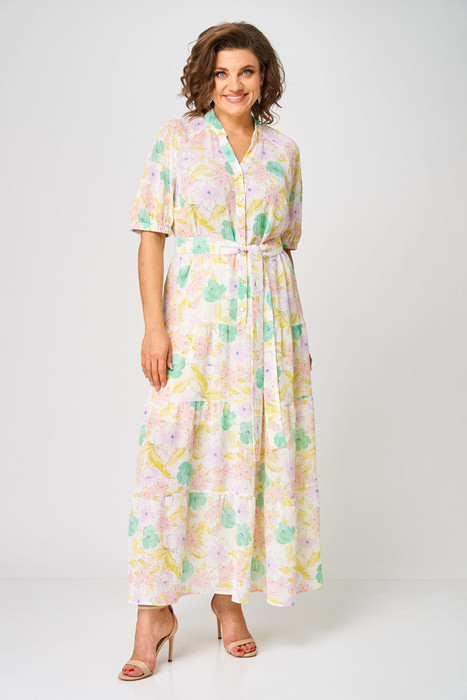 Платье из легкого и струящегося шифона с эффектом крэш станет идеальным выбором для любого случая. Длина макси и свободный крой создают элегантный силуэт, а воланы добавляют женственности и романтичности. Модель с короткими рукавами с резинкой по низу, со стойкой и застежкой спереди на пуговицах удобна в носке и подчеркивает достоинства фигуры. Яркий цветочный принт добавит свежести вашему образу, а съёмный пояс подчеркнёт линию талии.