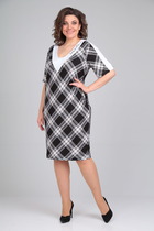 Прямой силуэт. Втачные укороченные рукава, понизу присобраны на резинке. Вырез горловины округлый с декоративным элементом-цепочкой. Низ платья украшает притачной волан.