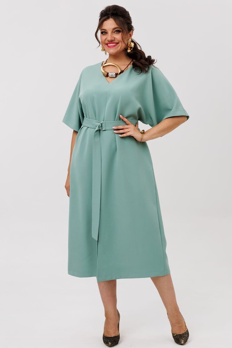Это платье в цвете «океанская волна» — образец сдержанной элегантности и безупречного вкуса. Его прямой силуэт мягко следует линиям фигуры, создавая лаконичный и при этом выразительный силуэт. Рукав в стиле кимоно добавляет образу легкость и динамику, делая каждое движение плавным и изящным.