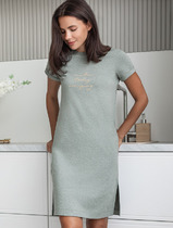 Элегантный V-образный вырез горловины подчеркивает линию шеи, добавляя образу женственности и утонченности. Удобная планка с застежкой на петли и пуговицы придает платью стильный акцент и позволяет легко регулировать посадку.