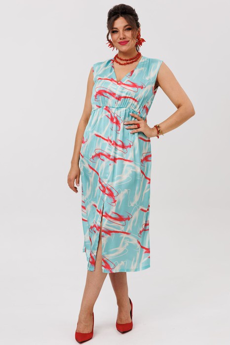 Продуманный разрез в переднем шве - это не просто деталь, а настоящее приглашение к движению: ты можешь идти широким шагом, танцевать или просто кружиться, зная, что платье последует за тобой. И, конечно, дизайнерский принт «кораллы в море» - главный голос этого наряда. Его актуальная расцветка становится твоим настроением на весь день: то ли нежная акварель, то ли смелая графика, она притягивает взгляды и делает образ завершённым даже с минимальным количеством аксессуаров.