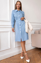 Платье приталенного силуэта, чуть ниже колена из костюмно-плательной ткани. Вырез горловины квадратной формы. Отрезное по линии талии. Перед и спинка с рельефами. По спинке средний шов, в котором вставлена потайная молния, внизу разрез. Рукав втачной широкий длинный, по окату собран на резинку. Длинный рукав легко превратить в три четверти с помощью резинки, вставленной по низу рукава. В комплект входит пояс из основной ткани.