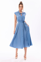 Платье прямого свободного кроя выполнено из льняного (смесового) полотна.Характеристики: прямой свободный крой, отложной воротник, застежка центральная на петли пуговицы, по линии талии нашиты шлевки, в комплекте пояс на кольцо из ткани основного изделия, по переду кармашек, рукав свободного кроя, по низу рукава подгиб.Длина изделия по спинке 83 см длина рукава от края горловины 42см.