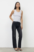 Платье полуприталенное, выполнено из ткани черного цвета с блеском. Характеристики: А-образный силуэт, лиф корсетный, прямой вырез, отрезная, брендированная подкладка, в ценральном шве на спинке потойная молния, по переду и спинке лифа вытачки. Длина изделия по центру спинки 107 см, длина по боковому шву 113см.