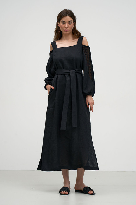 Романтичное трендовое платье, выполненное из легкой, качественной льняной ткани станет превосходным выбором для Вашего летнего гардероба. Платье свободного силуэта с карманами в боковых швах. Романтичный образ изделию придают бретели и спущенные рукава со вставками из кружева. Изделие на хлопковой подкладке. Возможно отличие фотографии по оттенку, связанное с разной цветопередачей монитора.