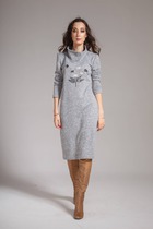 Платье в длине макси выполнено из трикотажа среднеей плотности. Верх платья обработан глубоким вырезом-лодочка и бретелями, имитирующими майку