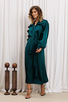 Платье женское из плательной ткани «твил» с набивным рисунком, свободного покроя, отрезное по линии талии, с втачными рукавами длиной 3/4 и горловиной овальной формы, окантованной основным материалом. Полочка – с вытачками в области груди. Юбка – из двух ярусов, каждый из которых присборен по шву соединения с верхней деталью.