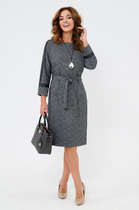 Платье женское, 2-бортное с застёжкой спереди на пуговицы, с втачным 3/4 рукавом, полуприлегающее, длиной за колено, с рельефами по переду и имитацией кармана, со съёмным воротником. Без подкладки.