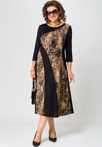 Платье женское из однотонной ткани, прилегающего силуэта, вырез горловины полукруглый, рукав втачной со сборкой по верхней части, застежа спереди на пуговицы, по переду и спинке изделия вытачки, спереди отделочная деталь-декоративный цветок из ткани, съемный, платье на подкладке.