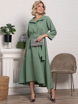 Для повседневного образа это платье станет правильным выбором. Модель с округлой формой горловины с каплевидной застёжкой по спинке и с цельнокроеными рукавами с отворотами, украшенными пуговицами, имеет свободный силуэт. Боковые швы дополнены функциональными карманами. Длина мидакси, лаконичная отделка строчкой, смещённая планка с контрастными пуговицами создают стильный образ, а интересное решение оборок с разрезами смягчает спортивное направление. Изделие выполнили из материала на основе льна. Длина позволяет носить платье как на каблуке, так и на плоском ходу.