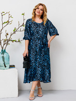 Платье женское нарядное А-силуэта выполнено из блестящей ткани на трикотажной основе, застежка- молния по среднему шву спинки, фигурный рукав с манжетом на пуговице. Длина платья по спинке 101 см, длина рукава 56 см