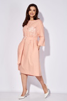 Платье женское А-образного силуэта. Застежка молния по спинке.Один рукав втачной  до линии локтя , другой сложного кроя с бантом .