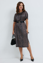Филау – платье полуприлегающего силуэта из трикотажа и декоративных однотонных вставок. Вырез горловины классический овальный, оторочен по краям кантом. Рукава 3/4, втачные, оторочены манжетами. По бокам от рукавов к юбке – лампасы. На спинке – потайной замок-"молния". Будьте практичной и привлекательной вместе с "Белловера"! Рост модели – 172. Длина изделия: 46 размер – 98,5 см 48 размер – 100 см, 50 размер – 101 см, 52 размер – 102 см, 54 размер – 103 см, 56 размер – 104,5 см.