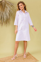 Элегантное женское платье из однотонной плательной ткани. Платье «А» образного силуэта с круглой горловиной оформленной стойкой, украшением служит съемный бант. Платье с фигурной проймой, рукав расширенный, со стойкой по окату и низу. Низ рукава оформлен широким манжетом с декоративными пуговицами. Платье без подкладки.