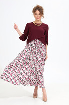 Платье полуприлегающего силуэта с широкой юбкой, отрезное по линии талии, по лифу цельновыкроенный пояс. Горловина «V» образная, застежка на петли пуговицы.