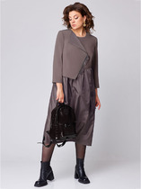 Платье женское полуприлегающего силуэта. Спинка со средним швом. Перед отрезной по линии талии. Верхняя часть с 2-мя мягкими складками, нижняя часть с запахом и 4-мя мягкими складками. Полы запаха округлой формы. В области складок декор-пряжка. Горловина круглая, сзади застегивается на петлю и пуговицу. Рукав втачной, одношовный с локтевой вытачкой. Фурнитура может отличаться от заявленной на фото.