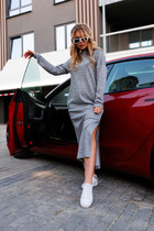 Платье из трикотажного полотна прилегающего силуэта. Ассиметричный вырез горловины в виде капли, обработан дополнительно трикотажной подкладкой до линии талии. Потайная молния вставлена в среднем шве спинки, сзади обработана шлица.