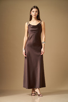 Цвет платья: насыщенный чёрный, с тонким чернёным блеском, вплетённым в верхний слой фактуры.
