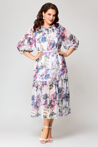 Красивое платье приталенного силуэта. Округлая горловина на внутренней обтачке, по спинке разрез - капелька с застежкой на петлю и пуговицу. Втачной рукав 3/4, оканчивается притачной манжетой. Модель отрезная по линии талии. По талии проложена эластичная резинка, что дополнительно подчеркнет Ваш силуэт. Пояс - кушак из основного материала в комплекте.