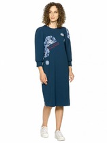 Платье женское полуприлегающего кроя, выполнено из шифоновой ткани. Изделие отрезное по линии талии, рукав втачной короткий, низ рукава обработан эластичной тесьмой. Горловина по лифу фигурная, По спинке платья имеется вставка из сетки и вырез "капелька". Платье на подкладке.