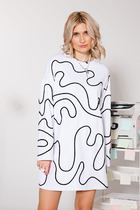 Платье женское нарядно-повседневное прилегающего силуэта, выполнено из трикотажного полотна разных дизайнов. Вырез горловины фигурный, обработан обтачками из отделочной ткани, рукав втачной, по полочке обработан разрез обработанный обтачками из отделочной ткани. Спинка с центральным швом и потайной застежкой молнией. Декором служит подрез по полочке и обтачки из отделочной ткани.