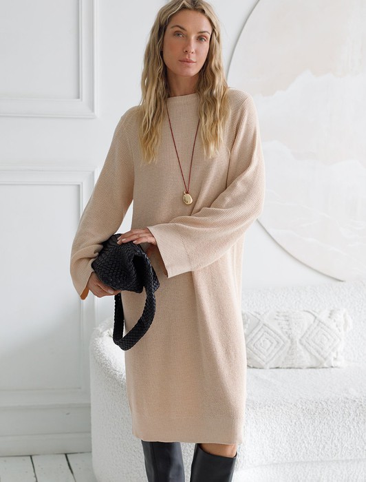 Совместные покупки Омск Женская одежда Футболки — Платье фактурной вязки из хлопка с кашемиром