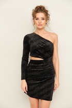Полуприлегающий силуэт, втачной покрой. Полочка с талиевыми вытачками и оригинальными фигурным подрезом. Спинка с центральным швом, талиевыми вытачками , высоким разрезом и потайной молнией.