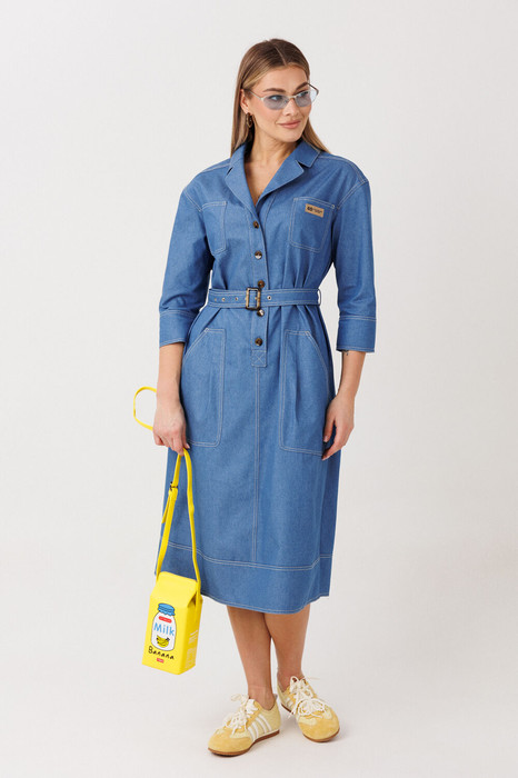 Элегантное платье прямого силуэта в рубашечном покрое выполнено из мягкого плательного денима на основе хлопка. Материал комфортный, дышащий и пластичный — идеально подходит для повседневной носки.