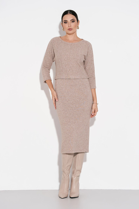 Женское платье полуприлегающего силуэта длины миди с цельнокроеными рукавами выполнено из мягкого высококачественного трикотажа. По переду изделия - небольшая декоративная планка, по шву спинки - разрез внизу. При правильном уходе ткань не скатывается и не деформируется. Уход: - стирка при температуре не более 30 градусов, предпочтительно ручная или деликатный режим стиральной машины; - выкручивать изделие из трикотажа нежелательно, допустимо немного отжать;
