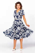 Женское платье на запах длины миди полуприлегающего силуэта со втачными рукавами и V-образным вырезом горловины. Изделие выполнено из мягкого высококачественного полотна с содержанием вискозы. Ткань не скатывается и не деформируется при правильном уходе.