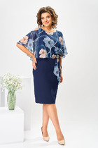 Платье полуприлегающего силуэта, с застежкой на потайную молнию в среднем шве спинки, без воротника, без рукавов, отрезное по линии талии . Лиф переда и спинки с рельефами от верхнего края до талиевого шва, . Спинка со средним швом. Рельефные швы лифа усилены регилином .Нижняя часть переда с двумя асимметричными деталями. Верхняя деталь с четырьмя односторонними складками, выходящими из бокового шва .