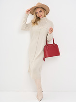 Платье без застежки, с отрезным воротником- хомут. Перед с нагрудными вытачками. Спинка с талиевыми вытачками, средним швом, заканчивающимся шлицей. Рукав втачной, длинный, двухшовный.
