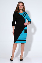 Платье, с застежкой на потайную молнию по среднему шву спинки, без воротника, с фигурным вырезом горловины. Платье отрезное по линии талии. Нижняя часть платья состоит из двух воланов. Лиф переда с рельефами, выходящими из горловины. Лиф спинки со средним швом, рельефами, выходящими из горловины. Рукав втачной, длинный, с отрезной манжетой. Окат и шов притачивания манжеты присборен. Платье со съемным поясом.