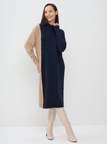 Платье без воротника, на бретелях- завязках , застежкой на потайную молнию в среднем шве спинки. По переду с нагрудными вытачками. По спинке- со средним швом, талиевыми вытачками. Вырез спинки-V-образный. Планка спинки присборена на резинку.