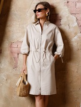 Состав: 97%Хлопок 3%ПУ Параметры модели на первом фото: Рост 172, бюст 88, талия 64, бедра 88Платье в стиле сафари выполнено из хлопкового твила. Посадка и объем рукава регулируются с помощью металлических стоперов. Модель дополнена боковыми карманами и золотистой застежкой на молнию. Благодаря наличию эластана в составе изделие сохранит свой безупречный внешний вид в течение долгого времени. Обладает высокой воздухопроницаемостью, в платье будет комфортно даже в жаркое время года.